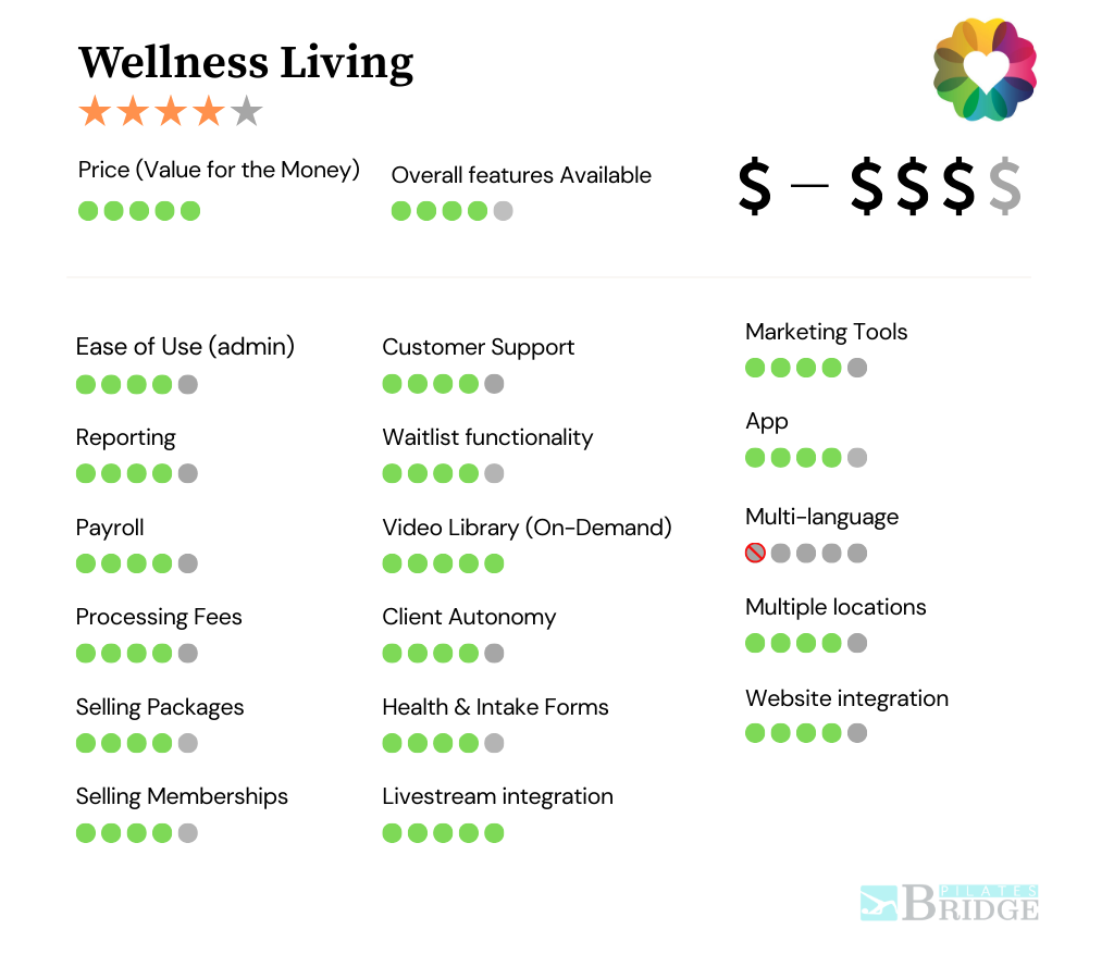 Wellness Living has been around for while and has a strong customer base. They offer essential tried-and-true features that most studios need. Studio clients appreciate the ease of booking and managing their accounts both in app and on the website. Their customer support is exceptional and can be a game-changer for studio owners who are tired of the lack of communication with previous platforms.